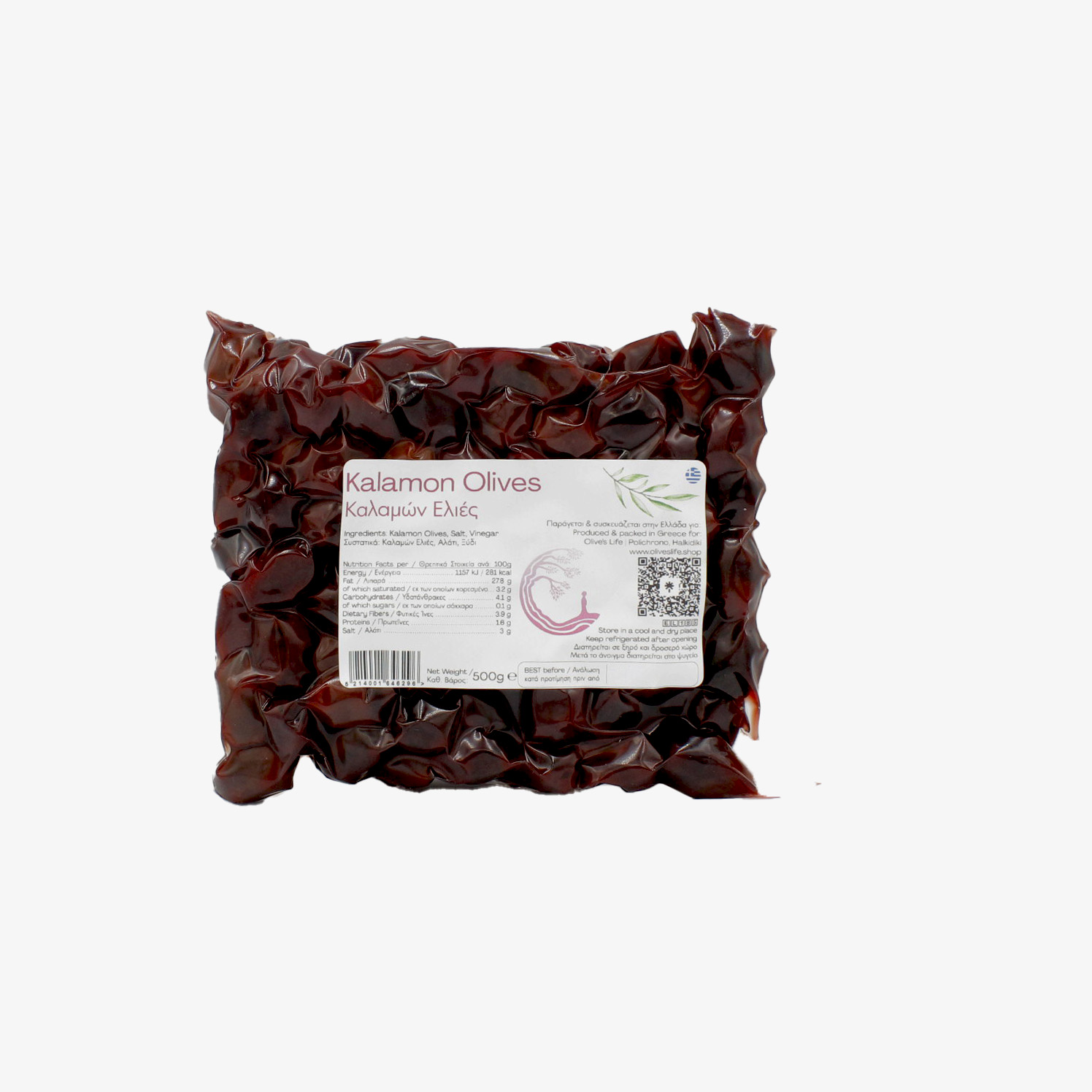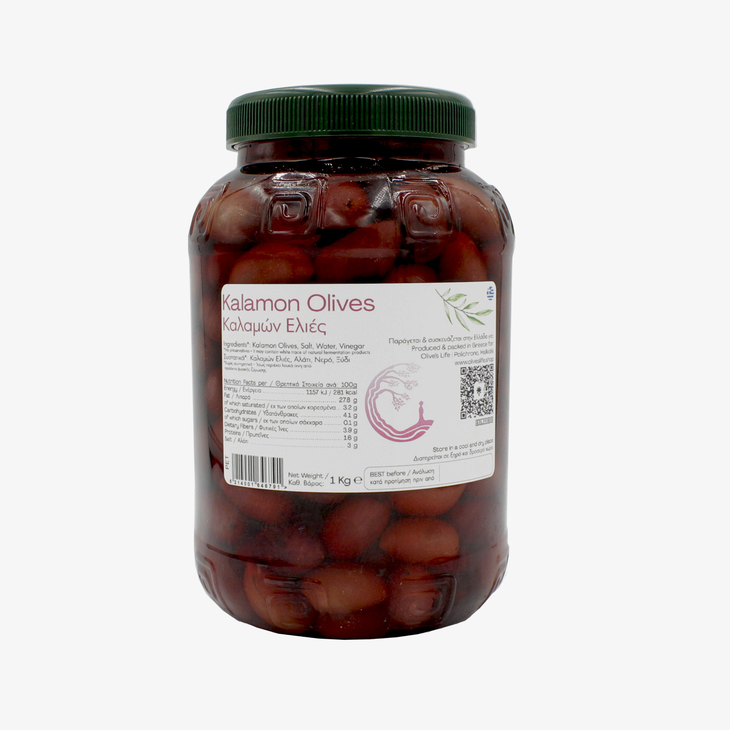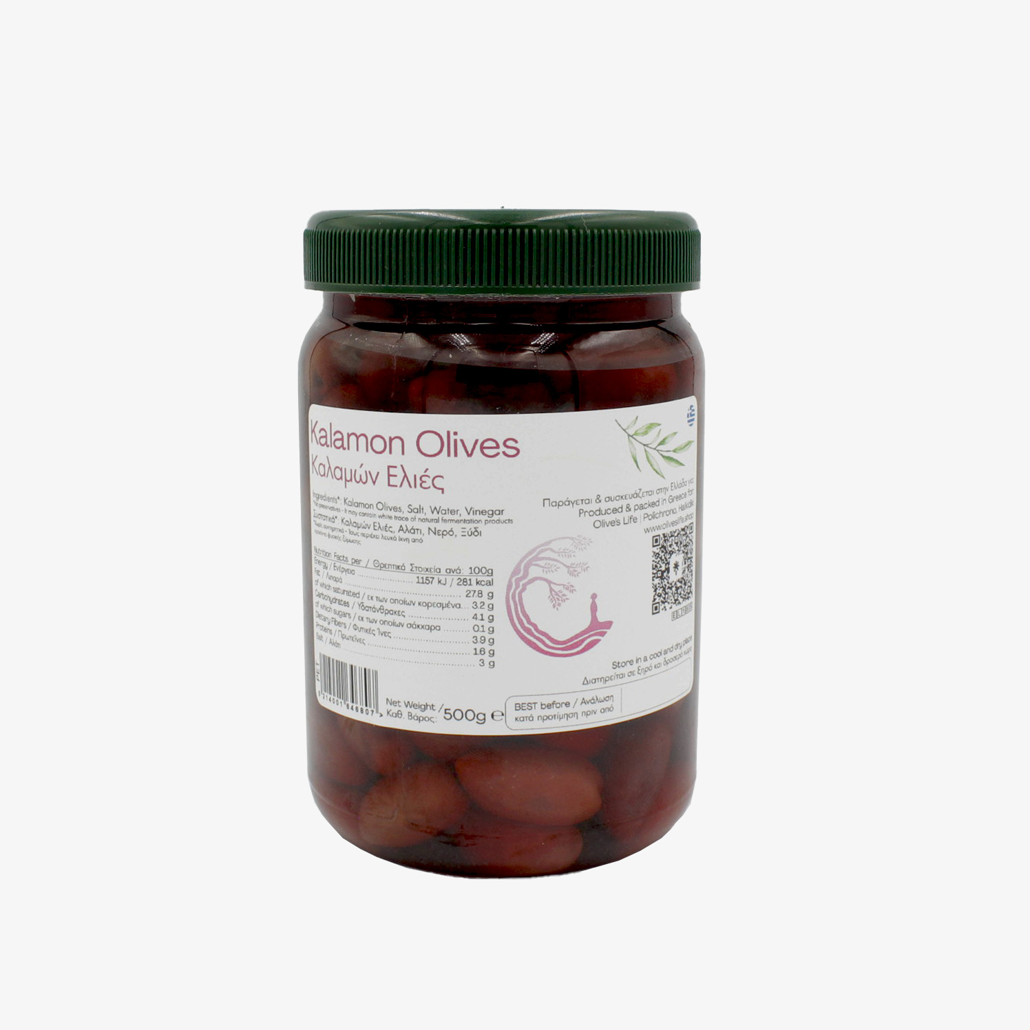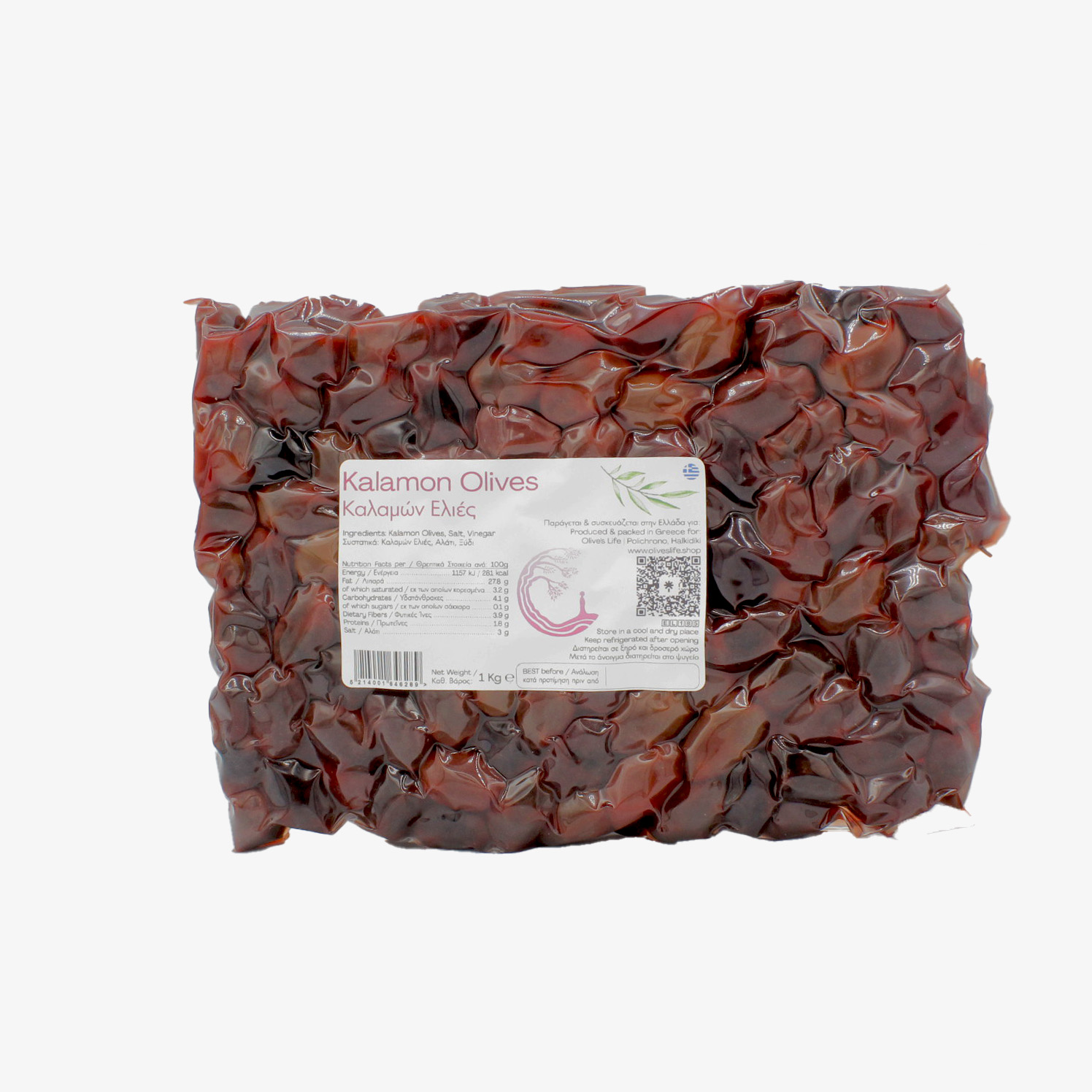 Οι ελιές Καλαμών έχουν ομοιογενές αλλά με διακυμάνσεις σοκολατί έως σκούρο καφέ ή ιώδες χρώμα και είναι χαρακτηριστικά μυτερές.