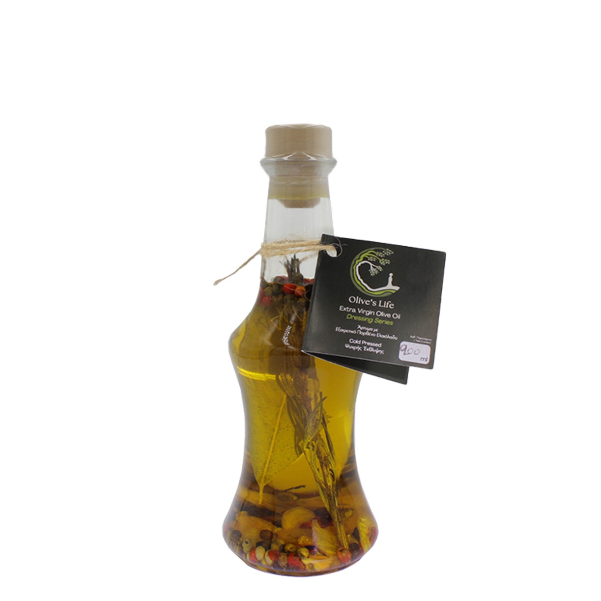 Extra Virgin Olive Oil, enriched with aromatic herbs in two flavor combinations of garlic and spicy pepper.