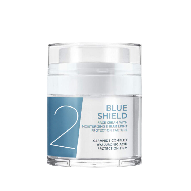 Hydration bomb. BLUE SHIELD™ is a 24-hour cream that instantly doubles moisture, boosts elasticity and improves the appearance of fine lines and wrinkles. At the same time, it strengthens the skin barrier and creates a protective film against blue radiation throughout the day.