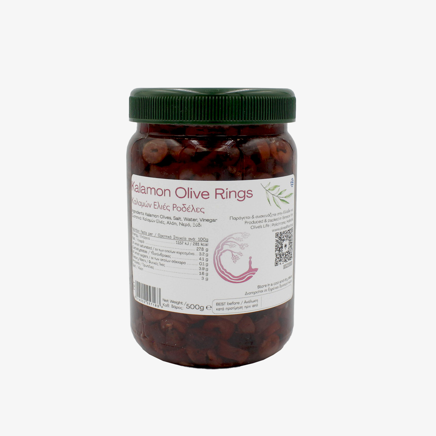 Kalamon olives are probably the most famous olives in the world. Enucleation is a process where we remove the core or pit from the olive. In this way, the Stoneless Kalamon Olives are obtained, i.e. the Kalamon ones without a core. Later on, we cut the Stoneless Olives in slices to create the Kalamon Olive Rings!