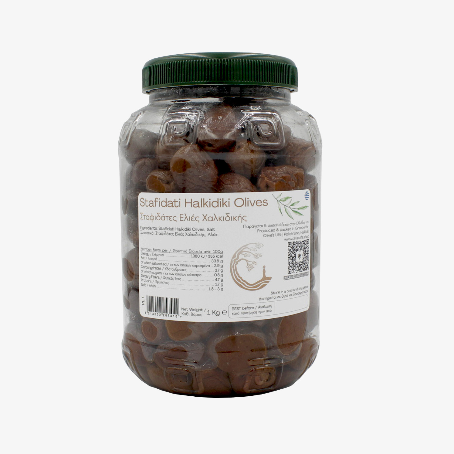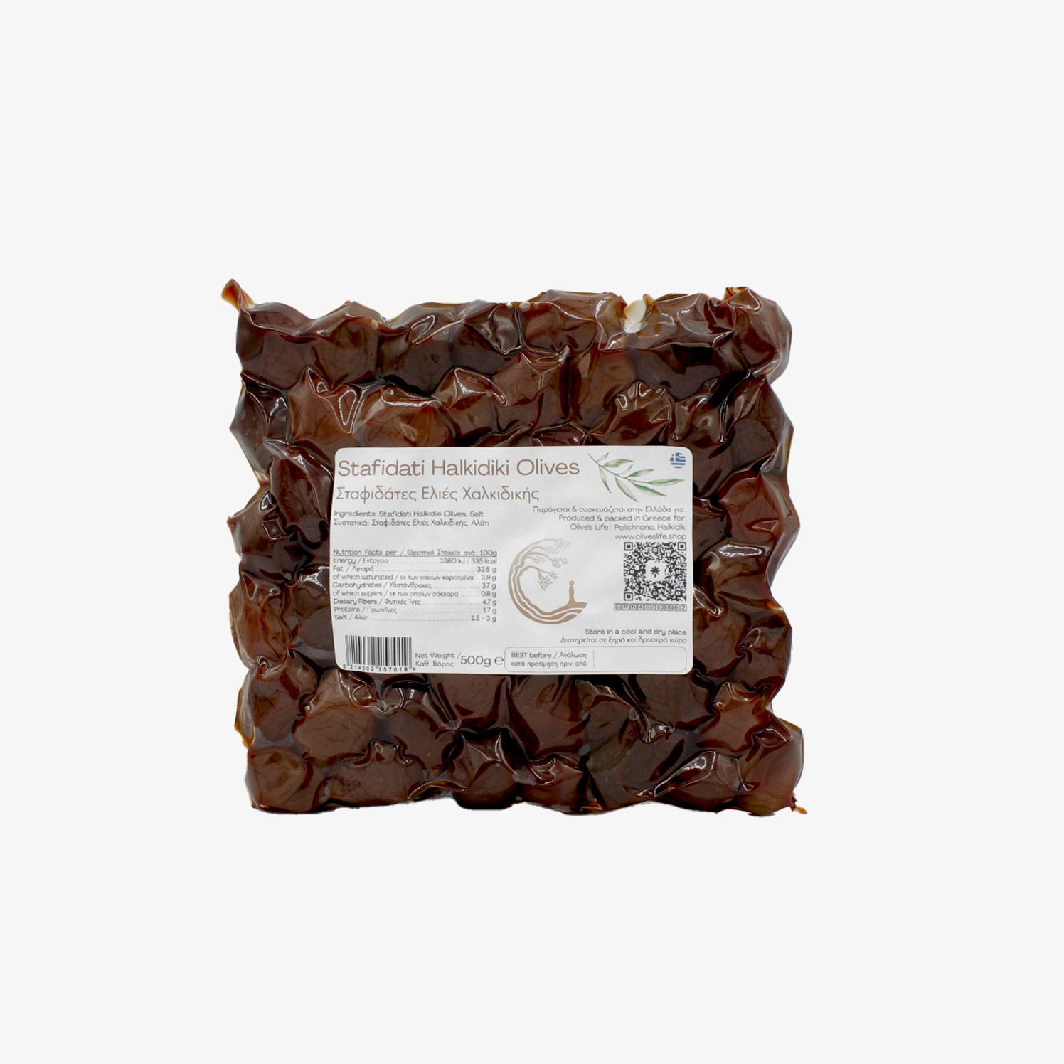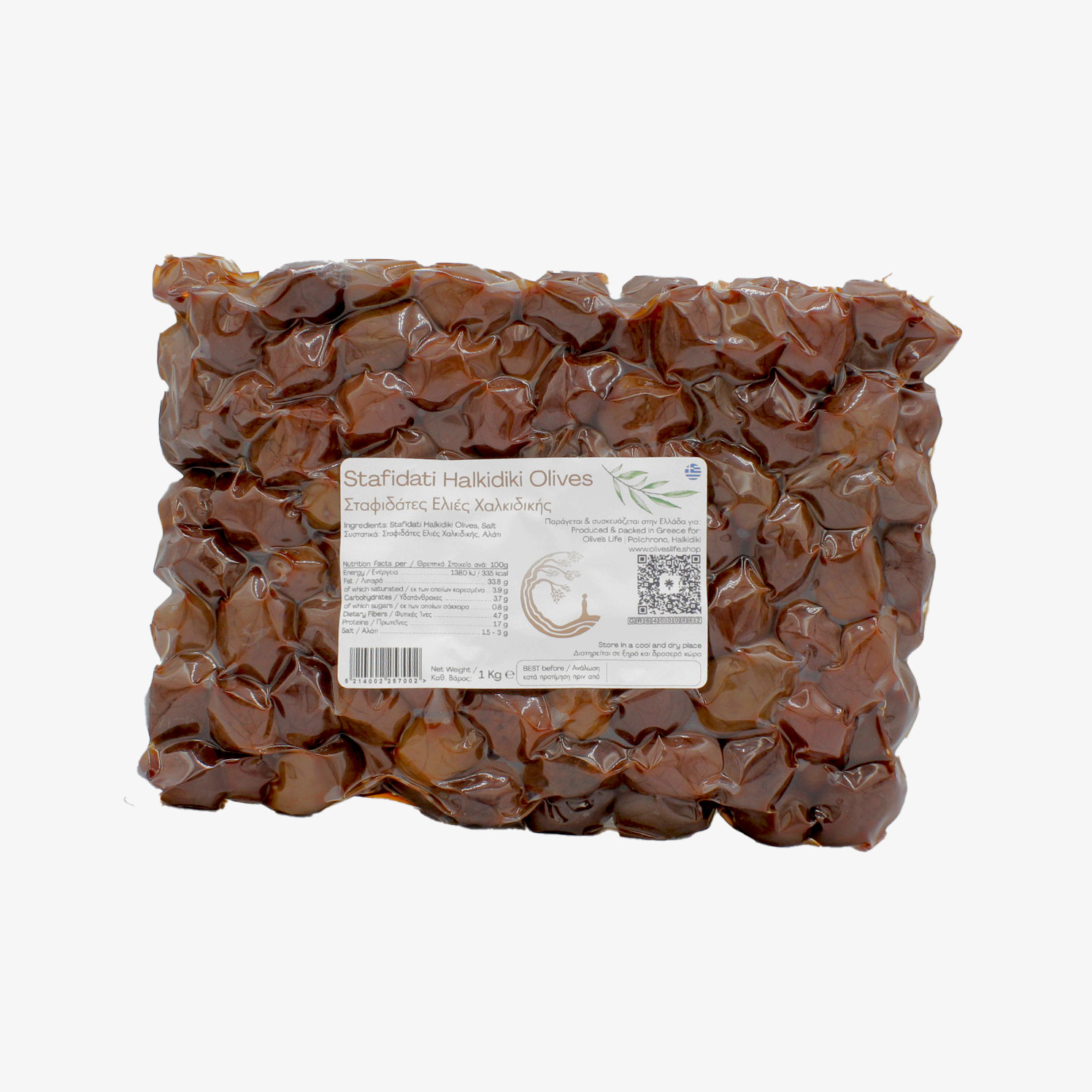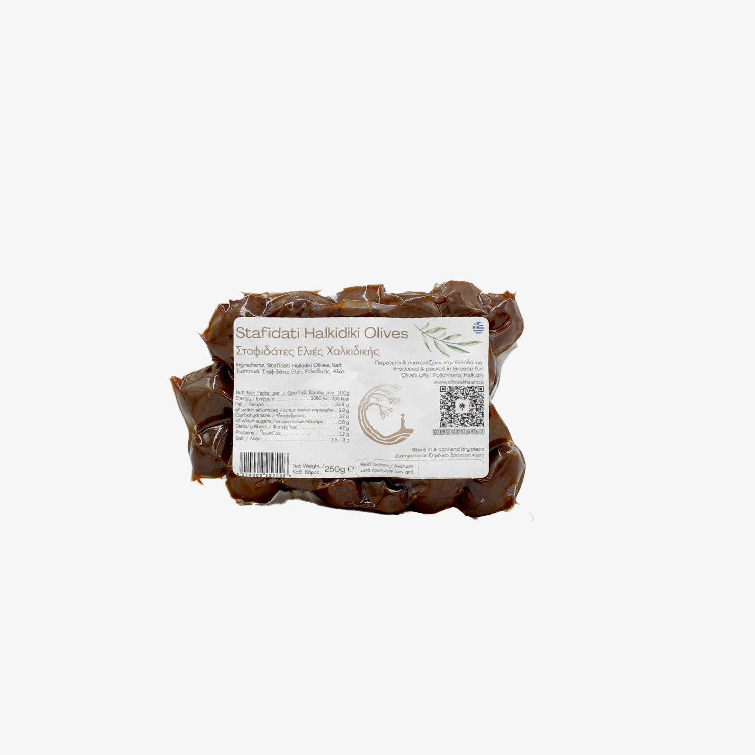 Stafidati Halkidiki Olives are practically wrinkled Halkidiki olives and are of course a local product in the prefecture of the same name – Halkidiki.